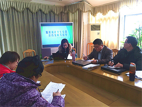 2015年3月23日下午,四位资源教师在接待室聆听了辅读学校教科室主任朱维娜老师就《随班就读学生受教育档案填写指导》所做的一个专题讲座。通过讲座,老师们知道了填写随班就读学生受教育档案时的一些要点和注意事项,对未来随班就读工作专业化发展有了进一步的认识。