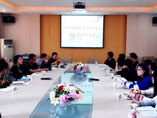 为了提高语文中考复习效率,确保冲刺阶段复习工作的科学、有序,4月1日下午,在清名桥中学举行了“2015年南长区语文中考复习研讨活动”。这次活动首先由清名桥中学的袁圆老师为全区的初三语文老师开设了一堂散文专题复习研讨课,课后,老师们聚集一堂,围绕着怎样提高中考复习课的有效性这一主题,对袁老师的课进行了点评,大家对袁老师就散文这一中考阅读难点所做的思考探究、归纳整理及对学生复习方法的指导给予了肯定,也提出了宝贵的建议。紧接着,各校初三备课组长将近期复习工作的开展情况做了详细的汇报,也提出了复习工作中的一些困惑,老师们畅所欲言,献计献策,大家达成的共识是——并不是所有的问题都能解决,困难也总是会存在,但是齐心协力,用辛勤与智慧尽自己之所能是毕业班老师应有的境界。