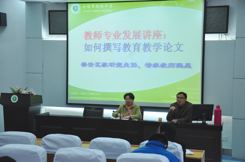 魏主任从自己的写作经历入手,将写作理论和自己的写作经验结合起来,深入浅出地把非常实用非常宝贵的写作技巧传授给在座教师;同时,魏主任将我校老师的论文分类整理,逐一点评,严谨真诚的教学态度令大家感动。
