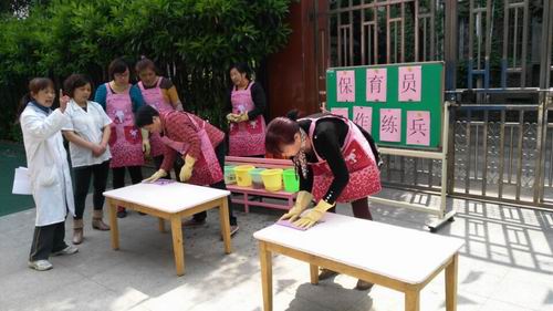 春季是传染病的高发季节,为保证幼儿园各项消毒工作到位、有效,不断提高保育员在日常班级卫生消毒方面更好、更准确地规范操作,4月21日下午,广新幼儿园举行了“保育员操作练兵活动”。
