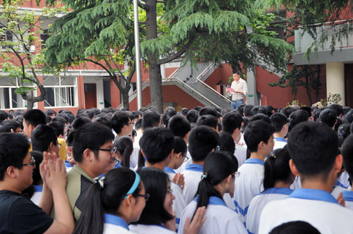 2015年5月9日,无锡市东林中学近千名初三学子将参加体育中考。他们将带着自己的自信、家长的期望、老师的重托走上体育中考的战场,接受体育中考的战场,迎接人生的又一次重大挑战。8日上午,初三学生们在操场集中,徐旭东副主任代表校领导及全校教师作初三体育中考动员。在已经完成的英语听力口语自动化考试中,东林中学初三考生们表现出无比的斗志与信心,也取得了满意的成绩。在动员中,徐主任从心理、礼仪、饮食、休息、时间、安全等方面向考生们再次强调。坚信每一们同学在明天的体育中考中取得优异的成绩,为自己争气,为班级争光,为东林书写新的篇章。