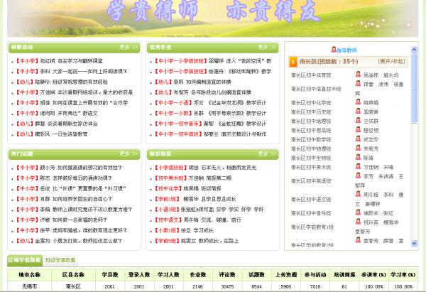 2015年8月1日至31日,南长区中小学、幼儿园教师暑期全员网络远程研修活动成功举行。全区中小学、幼儿园全体在职教师及学校领导共计2083人参加了为期一个月的研修活动。这种全员参与的网络研修模式在全市属于首次尝试。