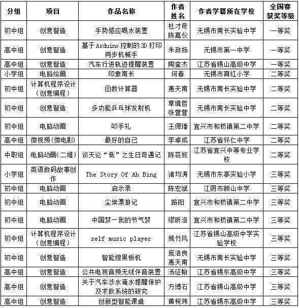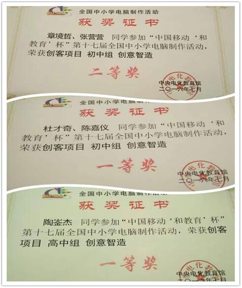 打个手势机器就能自动出水?开车打瞌睡汽车会自动提醒?戴个手套居然能远程遥控另外一个机械手?你或许以为这些都是科幻片才会出现的场景,但如今,无锡的中学生却让这些幻想变成了现实…… 在日前于河南洛阳举行的2016年全国中小学电脑制作活动中,来自无锡市南长实验中学、无锡市第一中学、江苏省锡山高级中学等学校的学生组团参赛,获得全国一等奖3个,二等奖7个,三等奖8个。 全国中小学电脑制作活动由中央电化教育馆主办,该活动每年举行一届。活动运用电脑绘画、电脑动画、创客等作品形式,展示中小学生在信息技术教育教学活动中的学习、实践和研究成果。今年,无锡市共有146所学校的6000多名学生参加了“2016年无锡市中小学电脑制作活动”,参与电脑绘画、电脑艺术设计、电脑动画、电子板报、网页设计、程序设计、创客等项目的比赛。共有871件作品入围市级竞赛,经评选,产生一等奖95个,二等奖171个,三等奖265个,优秀辅导员64名,优秀组织奖4个。无锡市共推荐150件作品参加省级评选,获省一等奖12个,二等奖19个,三等奖25个。无锡市教育局荣获领航杯2016年江苏省中小学电脑制作活动优秀组织奖。