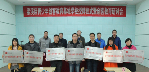 梁溪区教育局和南京师范大学代表在仪式上签订了合作协议。仪式上,还为南长实验中学、凤翔实验学校、塔影中学等7所学校授予了“青少年创客教育基地学校”牌匾。