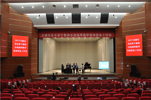 4月26日,由市教育局主办,市教科院、市少年宫、市音乐家协会承办的2017年无锡市音乐骨干教师合唱指挥教学培训班及工作坊在市工人文化宫举行。市教育局副局长许敏出席活动。来自全市中小学及职业高中音乐骨干教师、各区(市)少年宫合唱指挥教师共三百余名参加了培训。 本次活动邀请了国内著名作曲家、音乐制作人方兵,国际钢琴演奏家奥莉卡•萨玛苏耶娃,童声合唱指挥专家名师洪川三位专家,分别以《音乐语言与结构对思维方式的启示》、《钢琴伴奏在实际作品中的运用与提高》、《童声合唱训练中的几点要素》为主题进行讲座,为我市音乐骨干教师展开培训。讲座内容理论联系实际,并邀请现场教师与专家互动。同时,活动还以工作坊的方式,请专家为合唱团进行现场示范排练。生动精彩的讲座把老师们带进了合唱艺术的神圣殿堂,给老师们带去了全新的声乐教学理念和对合唱音乐的全新理解。 本次培训班的举办对提升我市学校音乐教师和社会基层音乐工作者的合唱艺术教学整体水平和艺术素养起到很好的推动作用,为我市合唱艺术的发展提高起到积极的作用。同时,也拉开了无锡市第37届中小学生“百灵鸟”艺术展演系列活动帷幕。