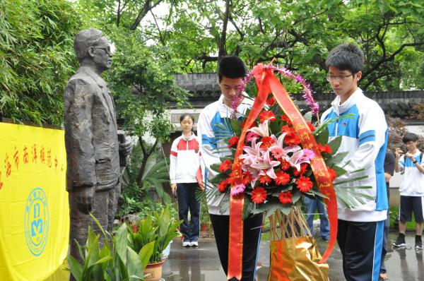 南模学子为伟大校友献花篮