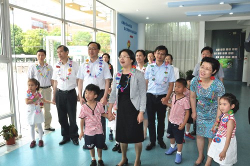 在“六一”国际儿童节来临之际,今天,无锡市委常委、组织部长周英,副市长刘霞分别带队来到全市小朋友们中间,向他们致以节日的亲切问候。