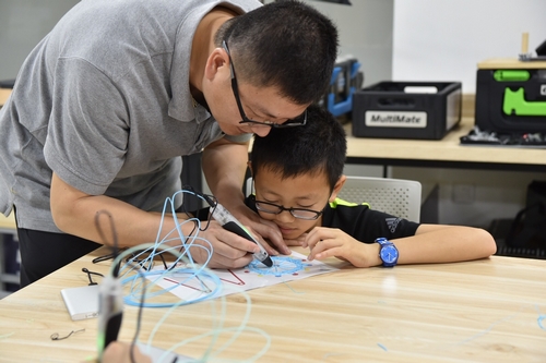 “耶,我的摩天轮做好了!美不美?赞不赞!”“我的小车能跟着黑线跑起来了!”“我的速度,第一!”2017年暑假的伊始,无锡市教育信息化管理服务中心组织了青少年创客公益活动——“3D打印笔创意”和“机器人巡线竞技”,两次活动共吸引了来自无锡全市各小学的创客、科技小小爱好者及其家长80余人。