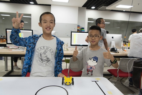 “我们完成了!”,孩子们兴奋的叫着!他们迫不及待地拿着自己的“巡线小车”进行展示,当他们看到小车稳稳地行驶在黑色线条上时雀跃不已。孩子们说,虽然以前没有真正接触过机器人的制作,但从小通过电视、书籍耳濡目染,早已成为了“机器人粉”。