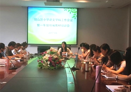 根据教育部要求,从今年秋季开始,所有小学、初中将一律采用“部编本”语文教材,也就由教育部直接组织编写的教材。9月6日,锡山区教育局教研室分别在无锡市东亭实验小学和仓下中学召开语文学科会议,对部编教材的使用进行专题培训。??? 在对小学语文一年级上册部编教材编写理念、主要特点与教学建议的交流与分享中,区学科教研员重点介绍了其编写背景、编写特点、编写依据、重要理念,以及“四大创新”,同时根据本册教材的结构体系,分层次、分版块,详细地阐述了教材的编写思想、教学建议和教学评价。??? 初中语文学科会议上,与会老师在区学科教研员的主持下,着重围绕部编教材的教学设想展开互动与交流,分组研讨“阅读教学”案例设计,并统一进行了“模拟微课”的说课、评课。为了集思广益,使培训更加有的放矢,区“乡村初中语文骨干教师培育站暨陆锋磊名师工作室”的全体成员也一起参与了本次活动,共同为部编教材的有效教学出谋划策。