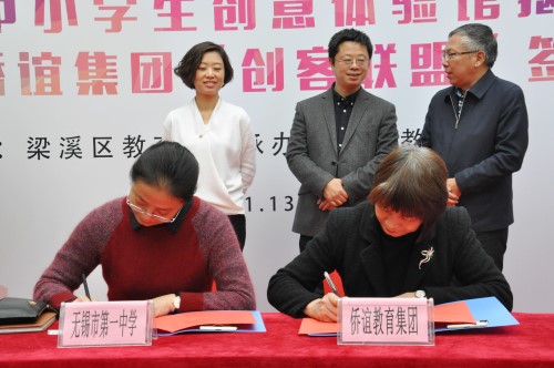 无锡市第一中学代表、侨谊教育集团代表签约“创客联盟”协议