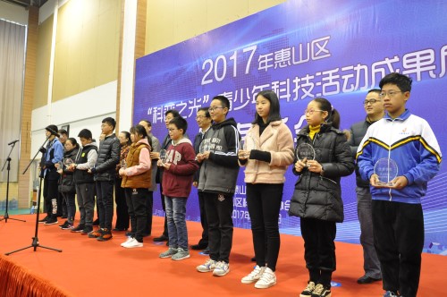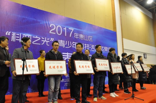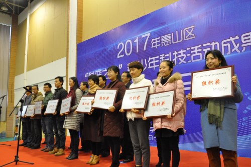 活动中,先后颁发了2017年惠山区“科普之光”青少年科技活动先进学校、2017年惠山区“科普之光”青少年科技活动成果展组织奖、2017年惠山区“科普之光”青少年科技活动先进个人、2017年惠山区“科普之光”青少年科技活动优秀学生等奖项。