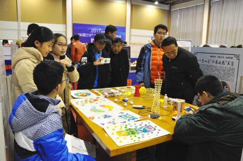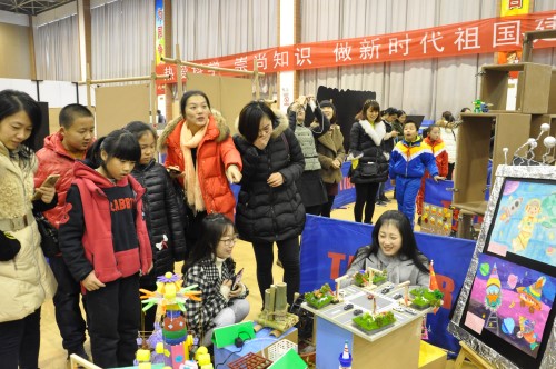 在人头攒动的作品展厅,全区46所中小学、幼儿园纷纷摆摊设点,展示各自的科技教育和实践成果,涵盖科技绘画、科技发明项目、科学实验演示、科技创意作品、手工制作等项目,涉及物理、化学、环境科学、计算机等多个学科。空中盘旋的酷炫无人机、简单实用的宠物自动喂水器、结构精巧的航模作品、精致可爱的手工编织作品……学生们自己创意、制作的作品引来了参观者们好奇的目光,为广大师带来了一场创新科技盛宴,也以全新的方式全面展现了惠山区科普教育的丰硕成果。