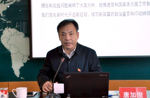 唐加俊深刻阐述了习近平新时代中国特色社会主义思想的时代背景、核心要义、创新观点和重大贡献,指出认真学习、深刻领会、大力宣传、全面贯彻党的十九大精神,是当前和今后一个时期的首要政治任务。希望街道工作人员能够把学习宣传贯彻党的十九大精神摆上重要议事日程,结合本地区本单位实际,作出专题部署,提出具体要求,学以致用推动发展。