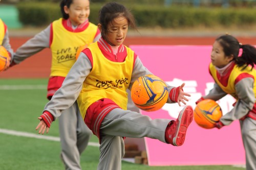 12月16日下午,在无锡市春城实验小学绿茵场上,2017年国际足联Live Your Goals女孩足球节活动江苏站正式启动,江苏省青少年校园足球工作领导小组办公室、无锡市青少年校园足球工作领导小组、新吴区教育文体局等相关领导,以及来自全市各足球特色学校教师代表、家长代表等400余人参加了本次活动。