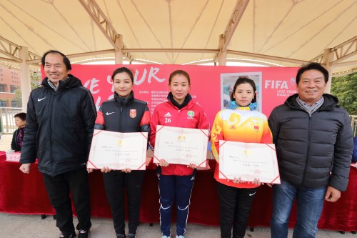 为前女足国脚翁新芝、翁晓洁、吴敏颁发女足推广大使聘书