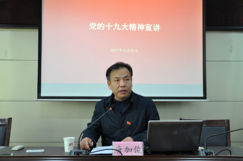 市委宣讲团成员、市委教育工委书记、市教育局局长唐加俊宣讲党的十九大精神
