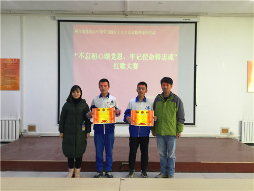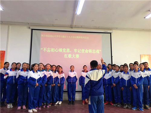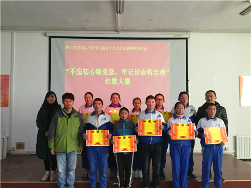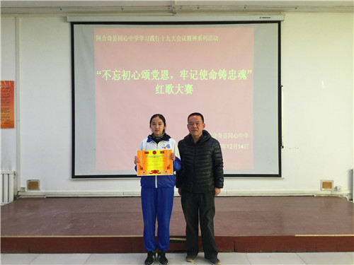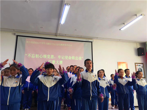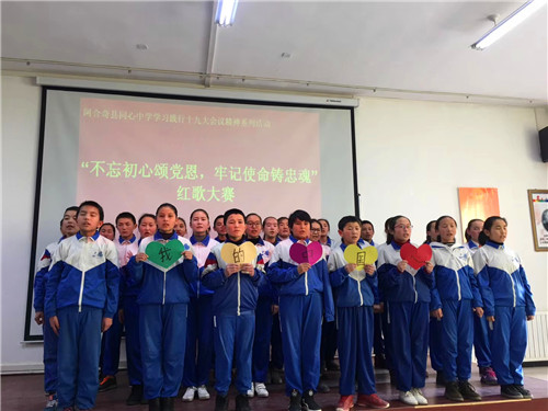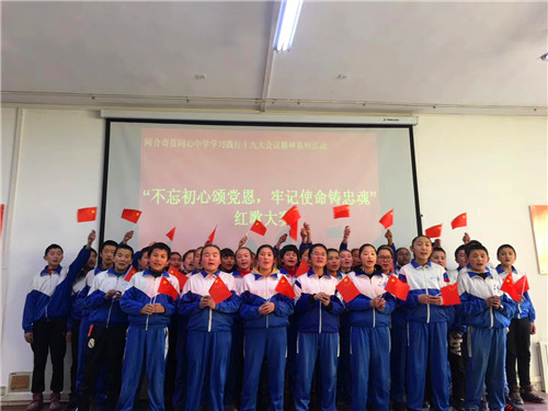 《我的中国心》、《歌唱祖国》、《国家》、《红旗飘飘》、《明天会更好》……这些耳熟能详的歌曲今天在阿合奇县同心中学的报告厅嘹亮响起。12月14日下午,同心中学“学习践行党的十九大精神系列活动”之八年级的红歌会在这里隆重举行,本次红歌会的主题是“不忘初心颂党恩 牢记使命铸忠魂”,八年级各班全员参与,以大合唱的方式展开。? ?赛场上,各班同学激情演绎、精彩纷呈,《红星闪闪》、《东方红》等一首首脍炙人口的经典红歌响彻校园,唱响了师生对伟大祖国、伟大的中国共产党的热爱,对美好明天的向往。豪迈雄壮的演唱不时赢得师生的阵阵掌声。无锡援疆教师团队与学校音乐教师担任了本次比赛的评委。评委们根据学生的精神面貌、演唱形式和音准节奏等方面,评出优胜班级。活动最后,无锡援疆副校长黄力凡对本次大赛作了精彩的点评,他高度肯定了本次八年级红歌大赛认真的准备过程,高度赞扬了师生们对祖国、对党、对家乡的热爱,他希望同学们保持这样的热忱,并将其全部投入到今后的工作和学习中,为自己人生的梦想而奋力拼搏,要让自己像雄鹰一样展翅高飞。? ? 本次红歌大赛,在和谐欢快的气氛中划上圆满的句号。尤其值得一提的是,本次大赛还借助了无锡的智慧校园直播系统对外进行了直播,这也让孩子们的歌声也能借助网络飞跃天山,飞进千家万户。当地师生、家长以及无锡后方多方关注,本次直播点击量超过了一万两千余次,这也成为阿合奇县同心中学对外展示的良好窗口。学校德育处表示一定会在全校开展更为生动精彩的学习十九大精神的系列活动,鼓励全校师生为构建出富强民主文明和谐美丽的社会主义现代化强国贡献自己的力量!