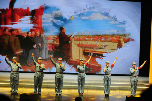 为营造朗诵专场“绘梦想?抒情怀”的坚定信心,舞台采用了新媒体的现代化技术,使画面大气而旋丽,充满艺术感与美感,给观众带来了视觉与听觉的双重冲击。“点燃观众,也点燃我们心中的理想之光、信念之光、时代之光,让观众和我们一起感受红色经典的美好”。这是策划此次组织教师朗诵专场的初衷。