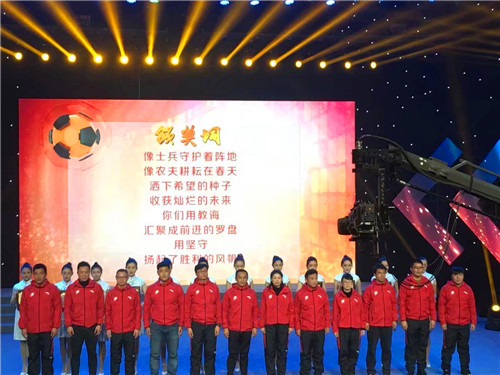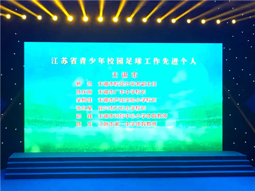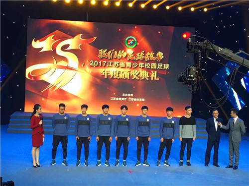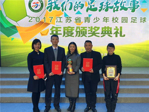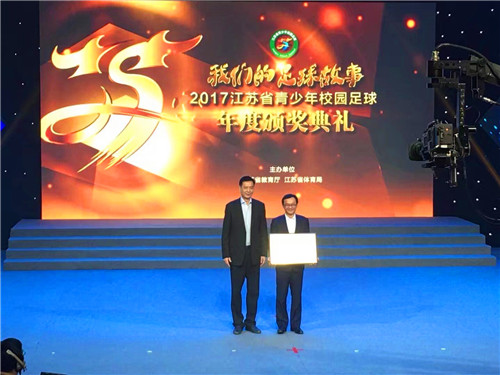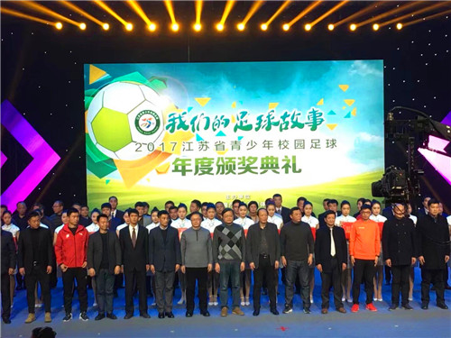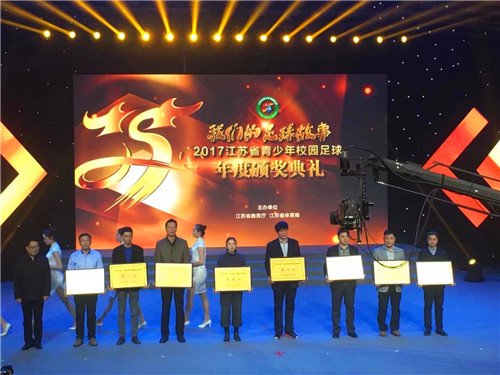 2018年1月9日下午,“我们的足球故事”2017江苏省青少年校园足球年度颁奖典礼在江苏教育电视台演播大厅隆重举行。省办公厅主任、省足协主席谢润盛,省教育厅副厅长朱卫国,省体育局副局长王伟中,省校园足球办公室等部门领导和来自全省各市、县、区大中小幼学校领导、教师数百人出席、参加了颁奖盛典。